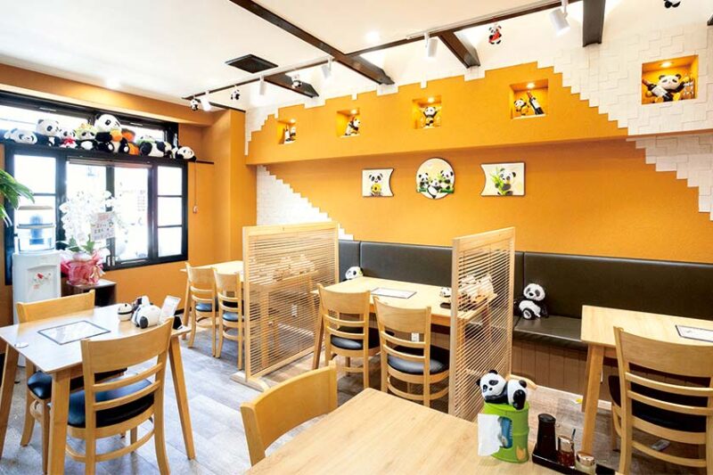 パンダの装飾が散りばめられ、かわいらしい店内。