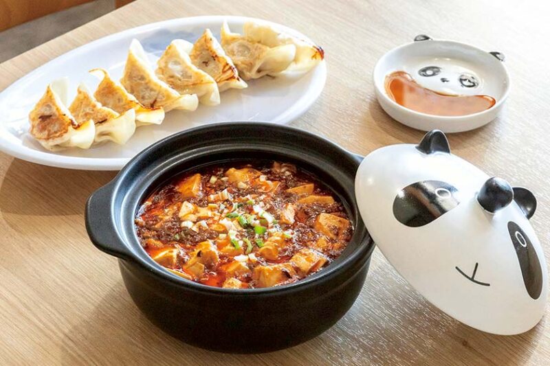 パンダモチーフの皿や卓上グッズも気分を上げてくれます。