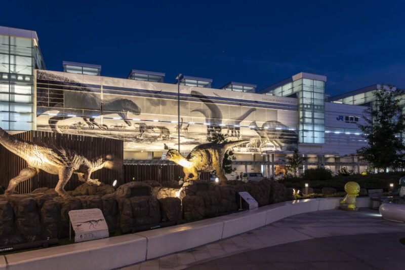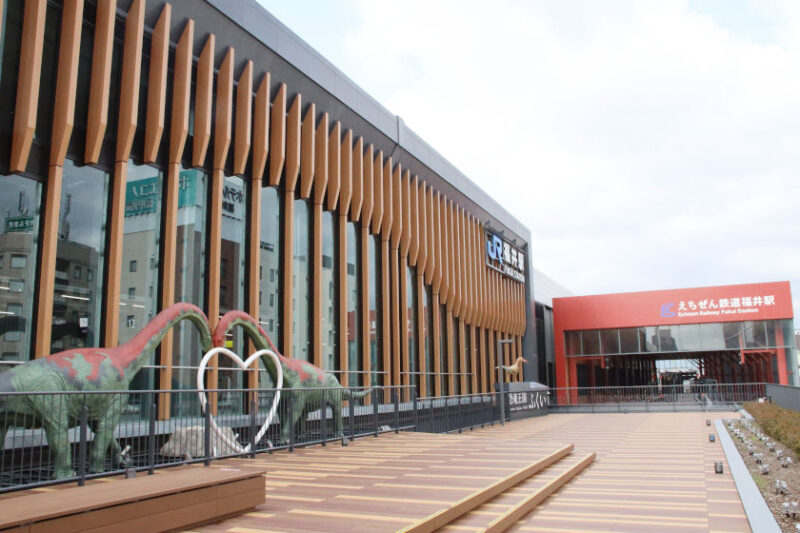 福井駅東口広場・えちぜん鉄道福井駅・福井市観光交流センターの恐竜