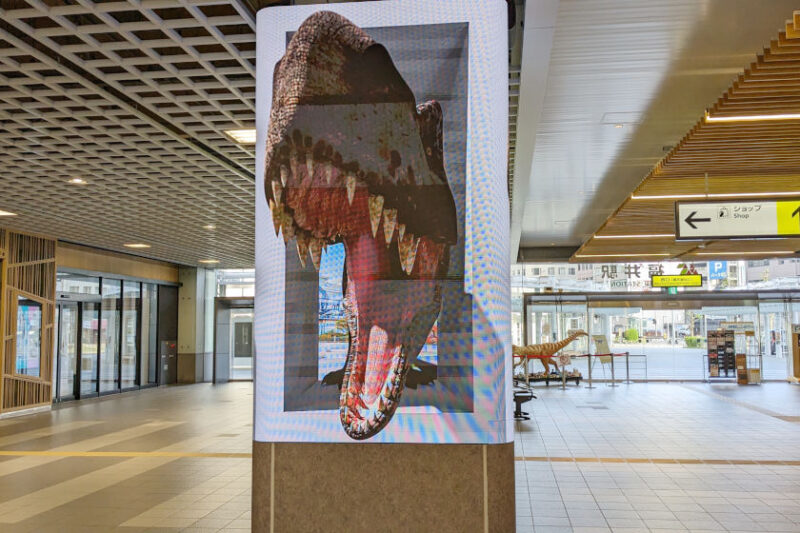 えちぜん鉄道福井駅改札前の新たなランドマーク「ジュラシックえちぜん」