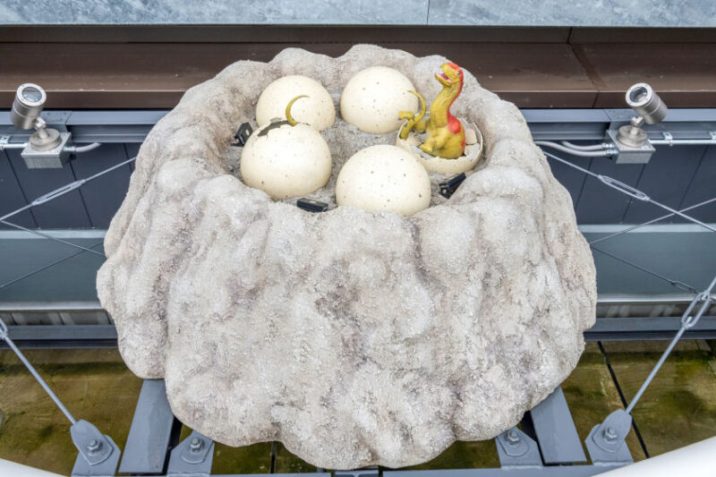 駅構内や出入口だけでなく、新幹線から見える恐竜スポットも新たに登場。