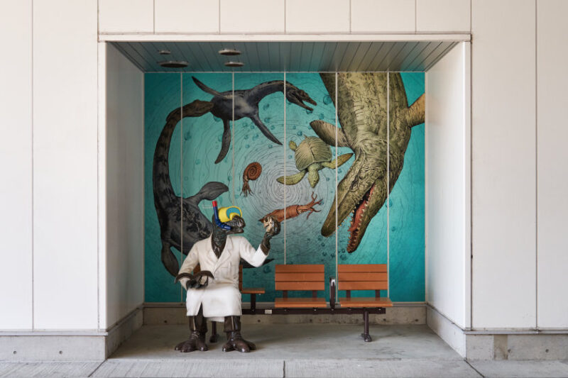 東西をつなぐ高架下で研究中「プレシオサウルスたちの海の世界」