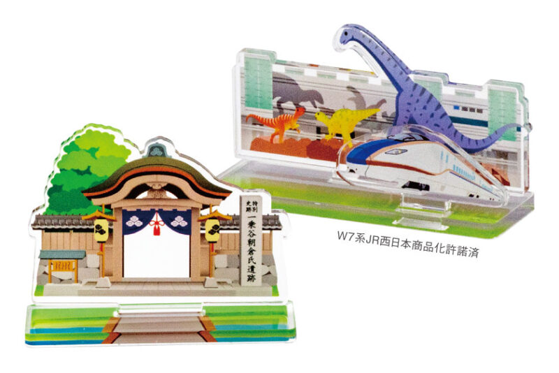 一乗谷朝倉氏遺跡や福井駅、東尋坊、丸岡城など福井の観光地のアクリルスタンド。