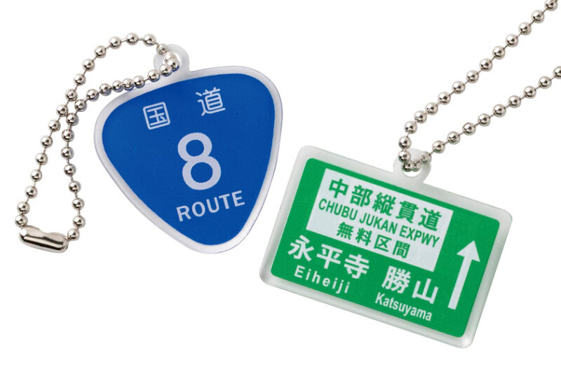 国道8号線や経路案内、“動物注意”まで、県民なら見慣れた道路標識のキーホルダー。