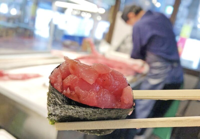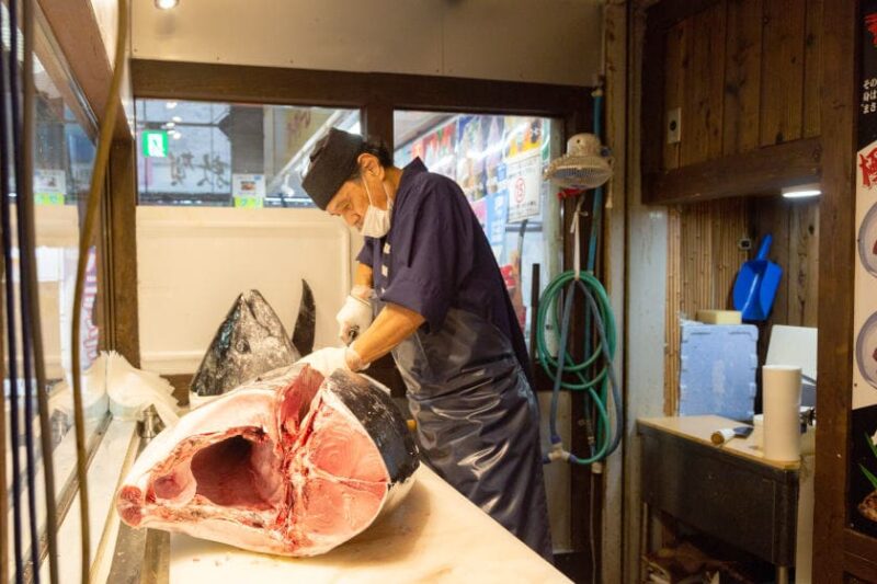 目の前で職人が大きな本マグロを包丁一本で鮮やかにさばいていきます。