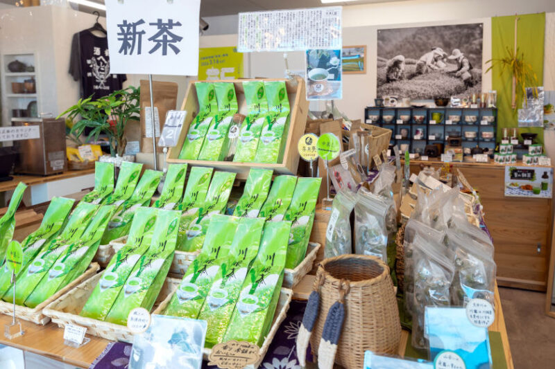 日本茶の三大産地の一つ、静岡・川根茶の茶農家をルーツとする茶里夢の店内には、お茶や茶器が所狭しと並んでいます。