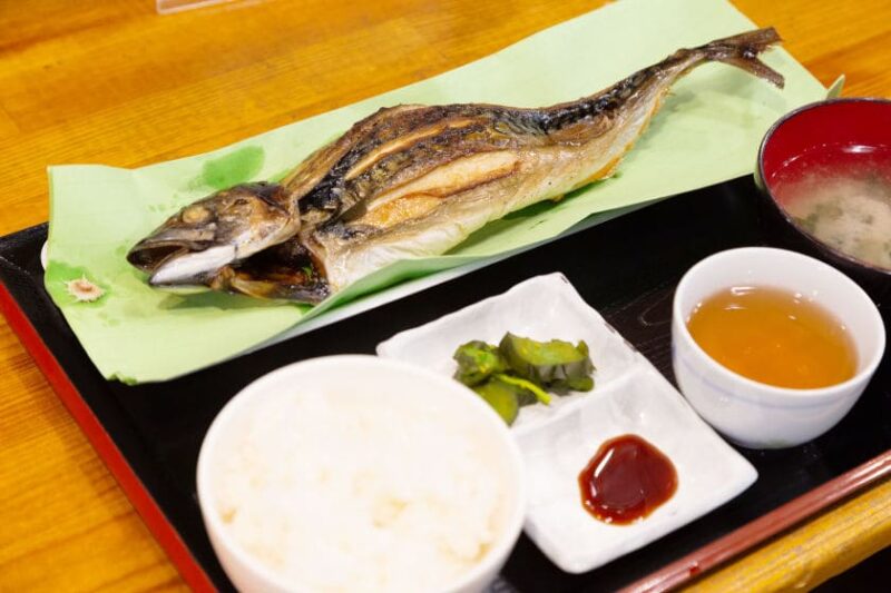 ランチはイートインスペースで、焼き鯖1本丸ごと味わえる焼鯖定食をいただきましょう(1,300円税込)。