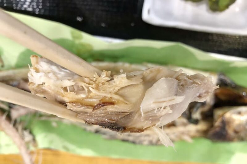 焼き鯖は1本1,200円~お持ち帰りできます(大きさにより値段が異なります)。