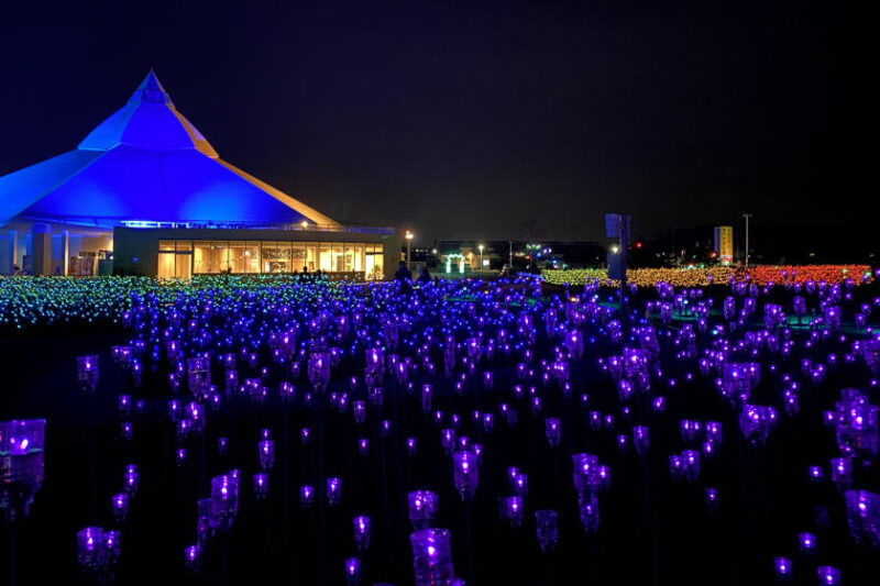 1年を通してイルミネーションやプロジェクションマッピングが行われているゆりの里公園。